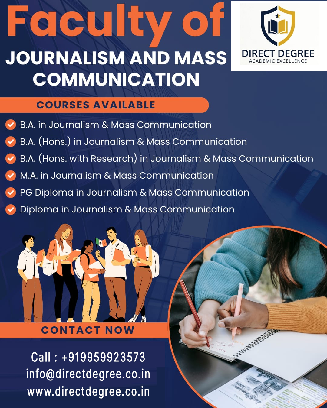 The Faculty of Journalism and Mass Communication offers programs focused on media studies, journalism, public relations, and digital communication. It equips students with practical skills and theoretical knowledge for careers in print, broadcast, and online media. If you are a 10th or 12th passed student and you have dropped out your study but now you want to make your career in the field of Journalism and Mass Communication and looking for back date admission and want to complete your course in fast track mode then you can take admission in following medical and paramedical courses given below in table:-