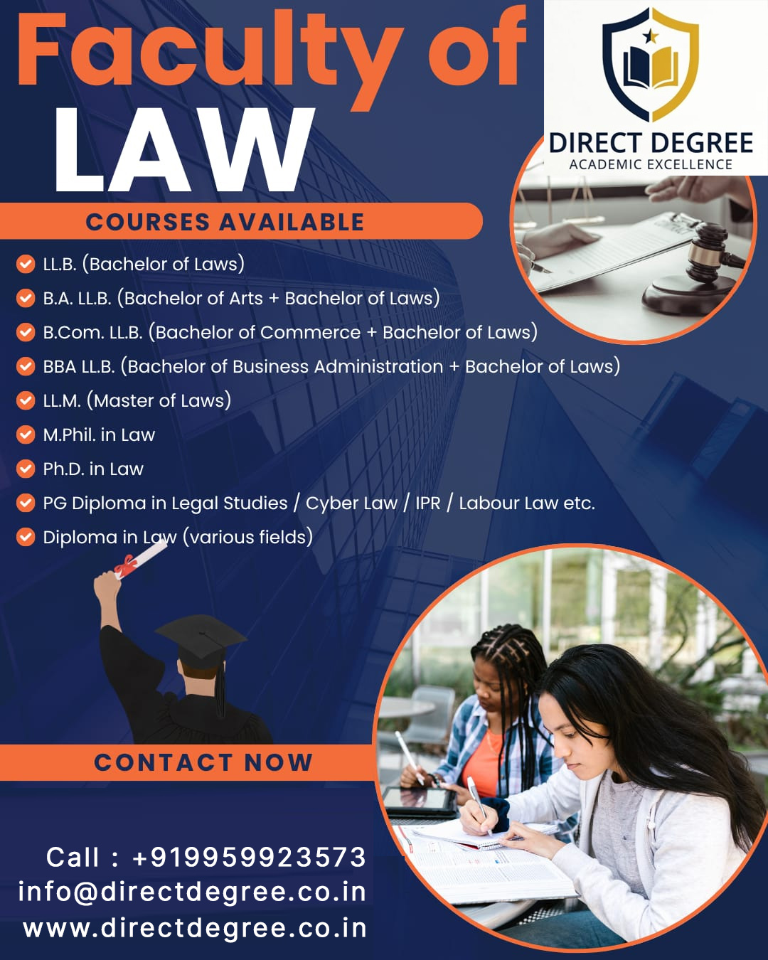 Law courses are academic programs that provide a comprehensive understanding of diverse legal disciplines—such as criminal law, property law, contract law, constitutional law, cyber law, and more. Candidates who have completed their 12th standard or an undergraduate degree but discontinued their studies may now resume their legal education through back‑dated admission sessions. These programs offer accelerated pathways—including fast‑track mode, single‑sitting examinations, and back‑date modalities—to help you complete your qualification swiftly. Below is a table of available courses for the upcoming back‑date session.